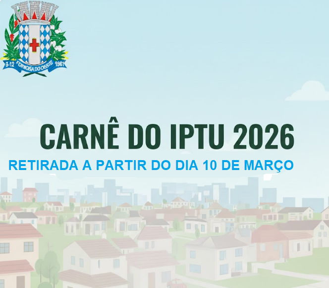 A retirada ou solicitação do carnê do IPTU 2026 poderá ser realizada a partir do dia 10 de março de 2026, por meio dos canais oficiais de atendimento do Município ou de forma presencial.