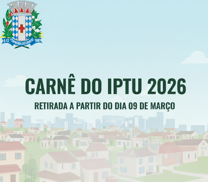 A retirada ou solicitação do carnê do IPTU 2026 poderá ser realizada a partir do dia 09 de março de 2026, por meio dos canais oficiais de atendimento do Município ou de forma presencial.